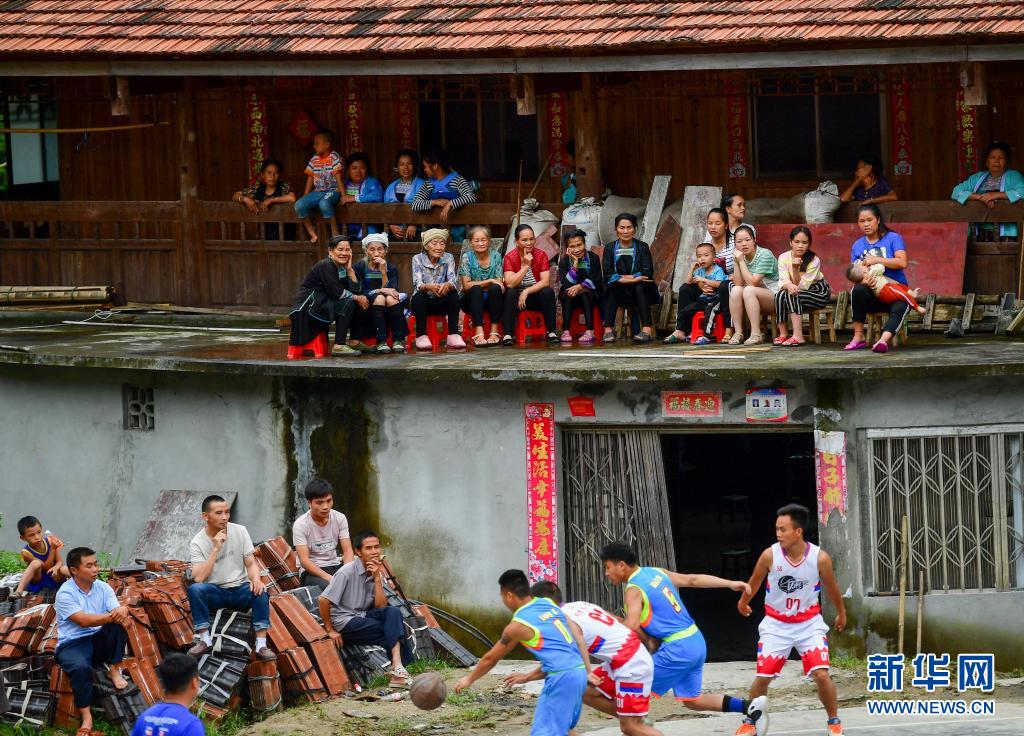 2019年7月19日,桂黔烏英苗寨的村民觀看新禾節籃球比賽。