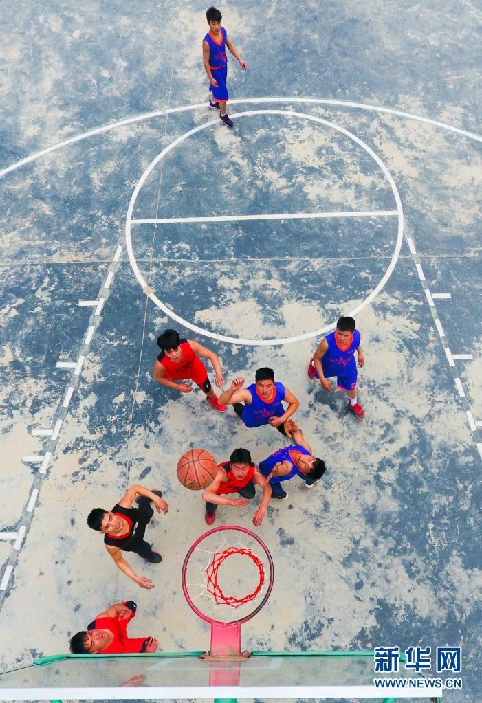 2018年2月17日,桂黔烏英苗寨村民在春節期間打籃球。