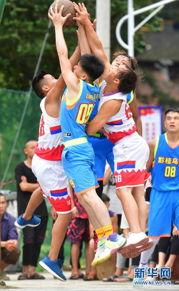 2019年7月19日,桂黔烏英苗寨村民打籃球歡度新禾節。