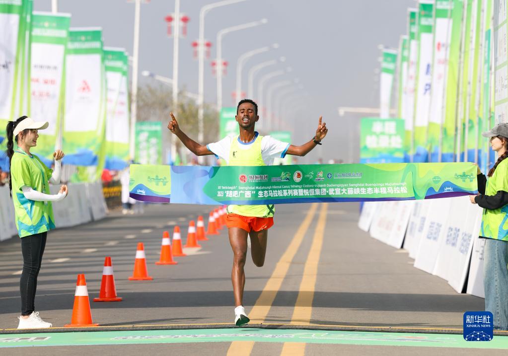 4月16日,埃塞俄比亞選手古特馬·阿貝貝·富法沖過終點線,他以1小時06分19秒的成績獲得男子組冠軍。