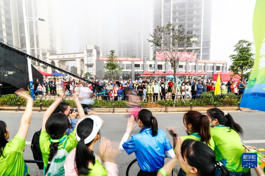 4月16日,志愿者和觀眾在場邊為選手加油助威。
