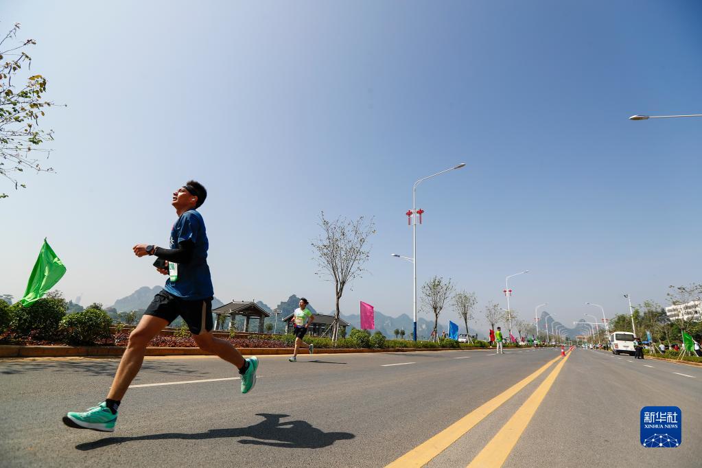 當日,2023“奔跑吧廣西”生態馬拉松系列賽暨武宣大藤峽生態半程馬拉松在廣西來賓市武宣縣開跑。