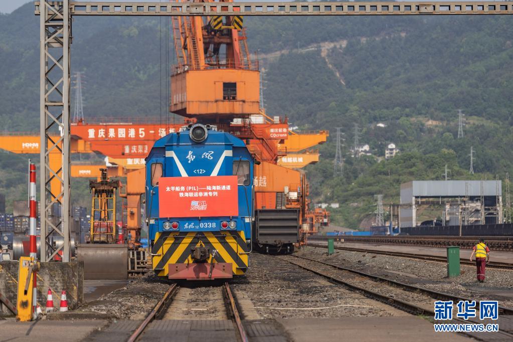 4月27日,太平船務——西部陸海新通道江鐵海聯運非洲專列在重慶果園港魚嘴站等待發車。