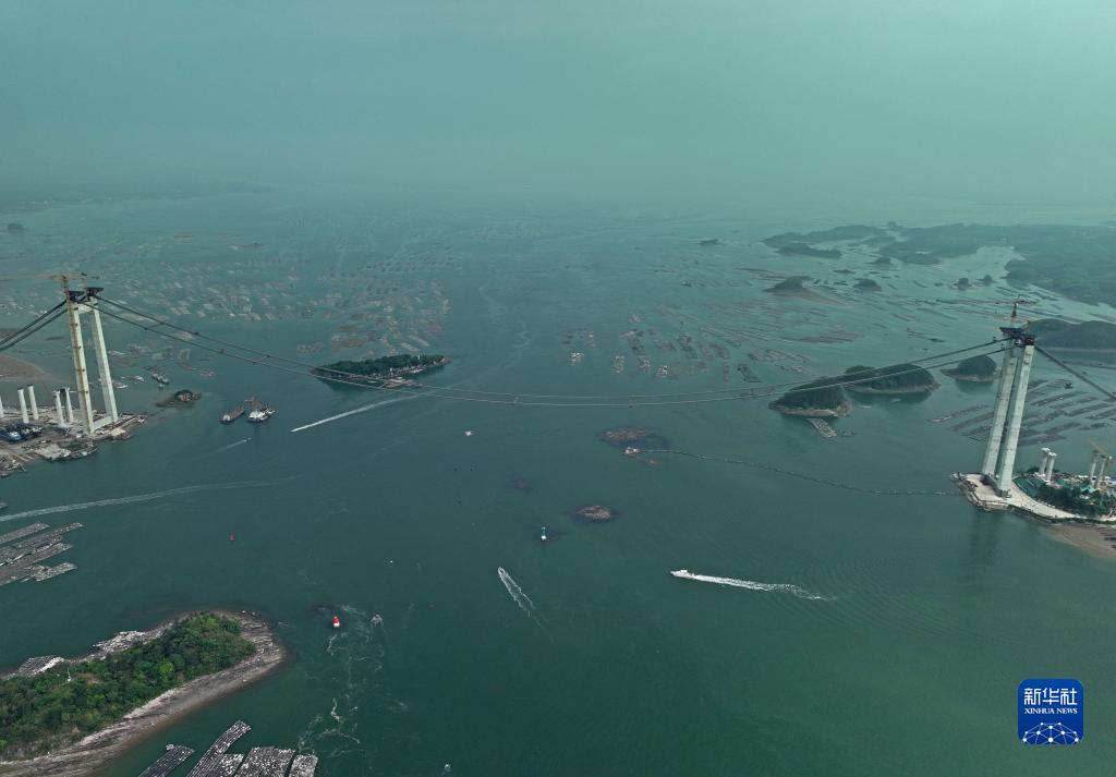 近日,位于欽州市的廣西最長跨海大橋——龍門大橋項目建設全面進入上部結構施工階段,其中龍門大橋主通航孔橋已完成主纜的架設,目前正在進行緊纜施工。
