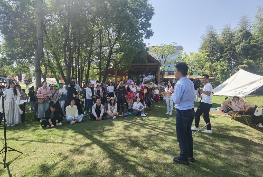 5月1日,浙江龍游縣8090新時代理論宣講團在詹家鎮浦山村鳳凰部落開展宣講集市活動。新華社記者張璇 攝