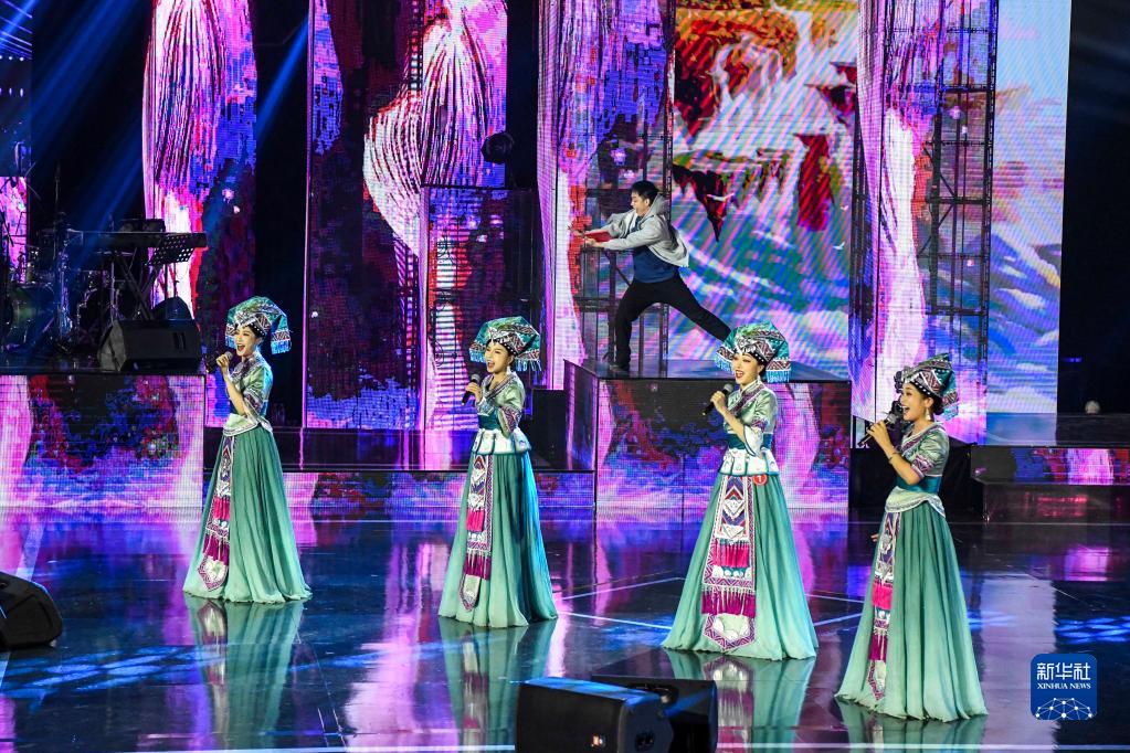 5月9日,在廣西南寧園博園演藝中心,參加“潮音·2023新民歌挑戰賽”總決賽的歌手在比賽中。
