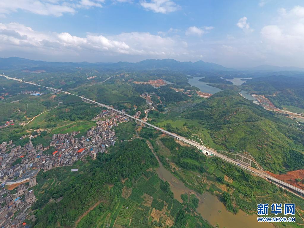 這是5月16日在中鐵五局南玉鐵路6標段拍攝的施工現場(無人機照片)。