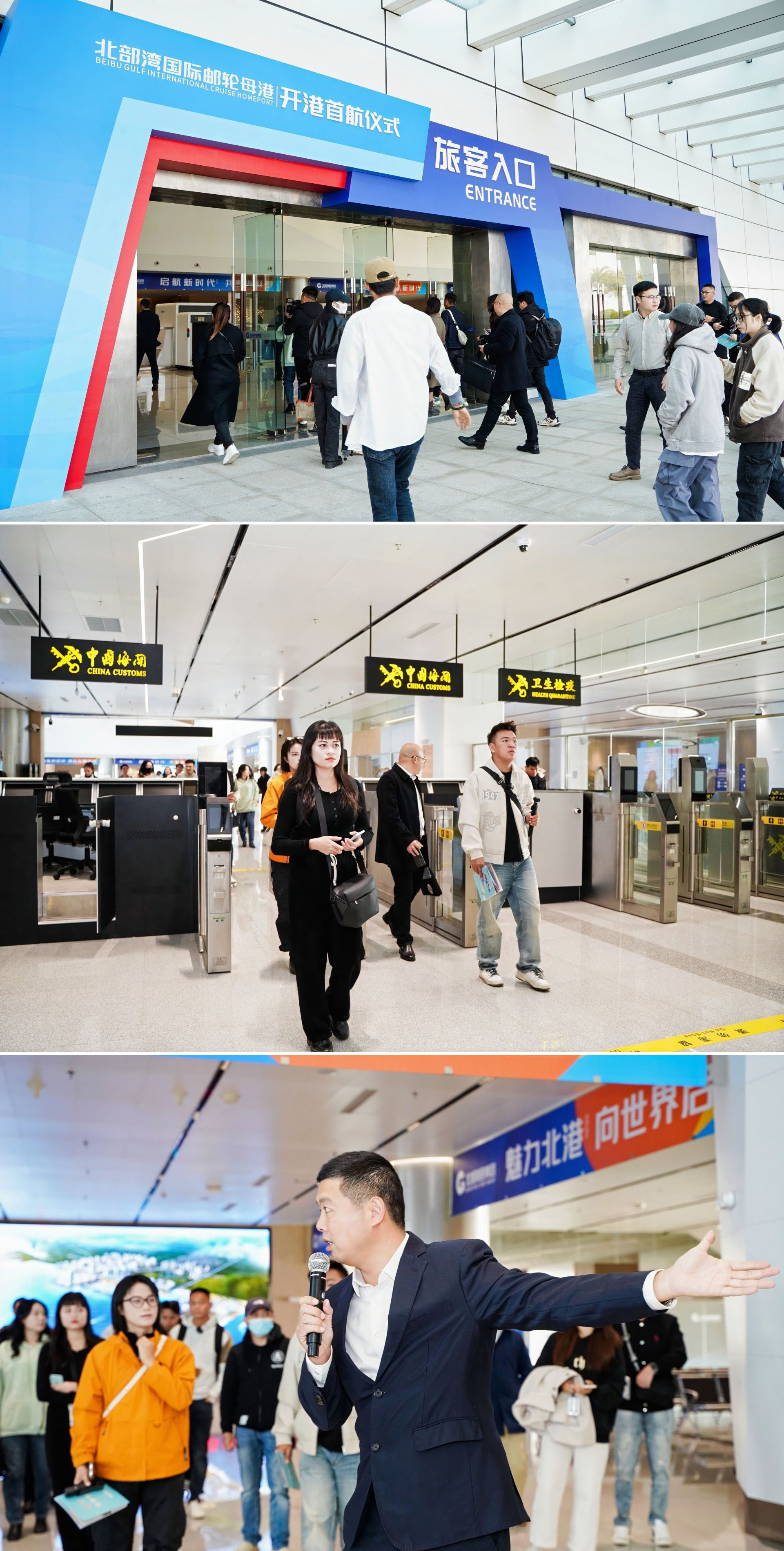 12月8日,“云說壯美新風尚”網絡名人廣西行線下考察專題活動舉行,來自廣西的十多位網絡名人代表齊聚北海,在廣西北部灣國際郵輪母港了解出入境旅游情況,感受快速通關效率。