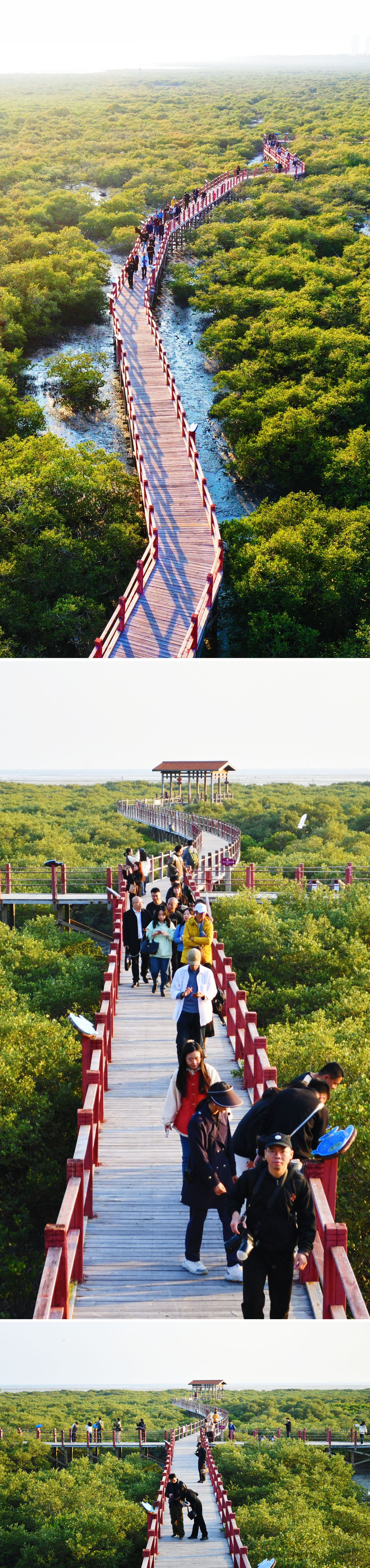 網絡名人們在金海灣紅樹林用心用情記錄和拍攝,在社交媒體上與網友分享廣西生態文明建設成果,利用自己的影響力,引導網友積極參與生態文明建設,動員廣大網友積極踐行“綠水青山就是金山銀山”理念,努力建設人與自然和諧共生的現代化。