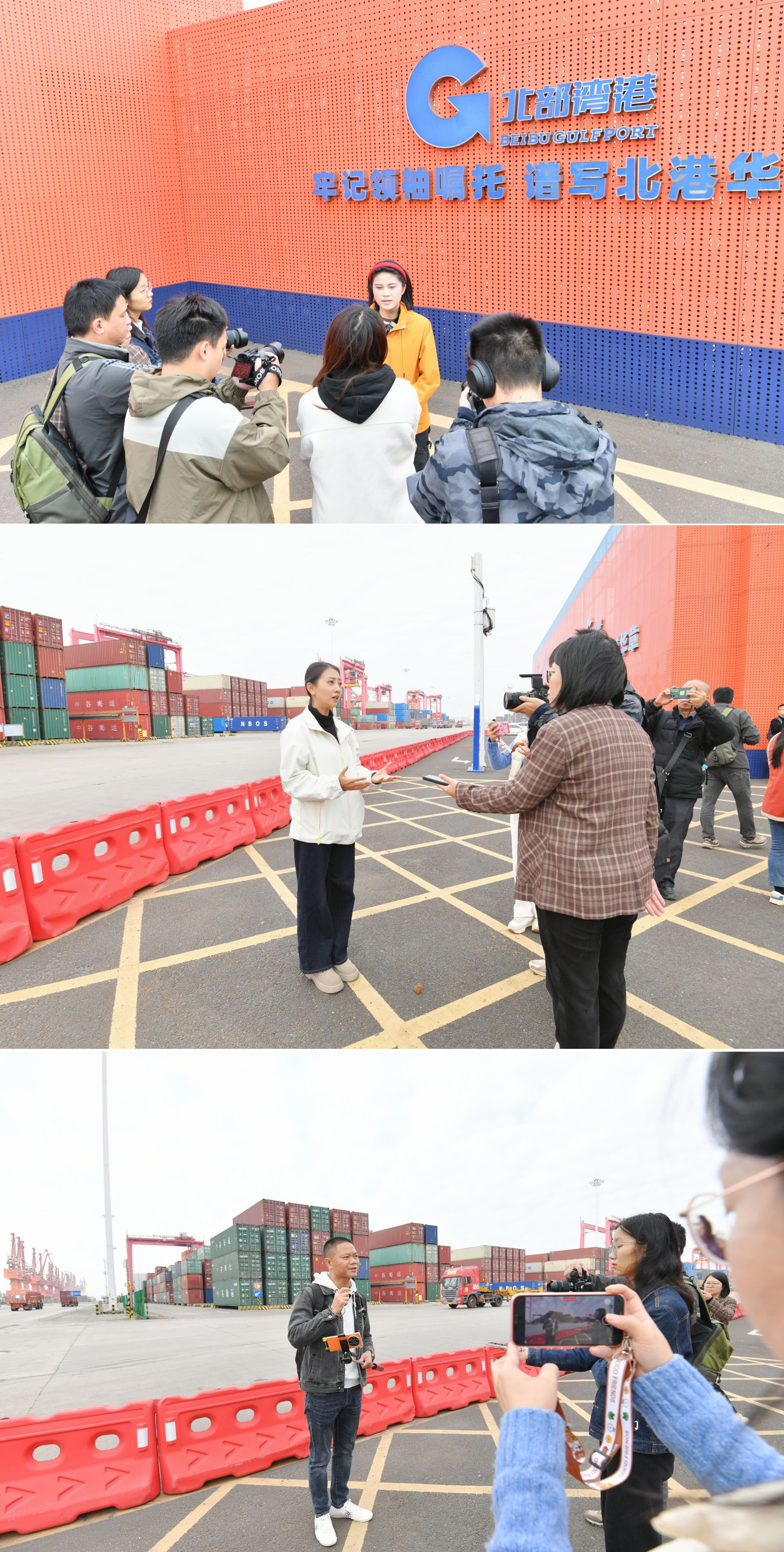 網絡名人參觀完北部灣港北海碼頭,感嘆廣西向海經濟取得的喜人成果,并表示將利用好手中的鏡頭,記錄下這一時代巨變。
