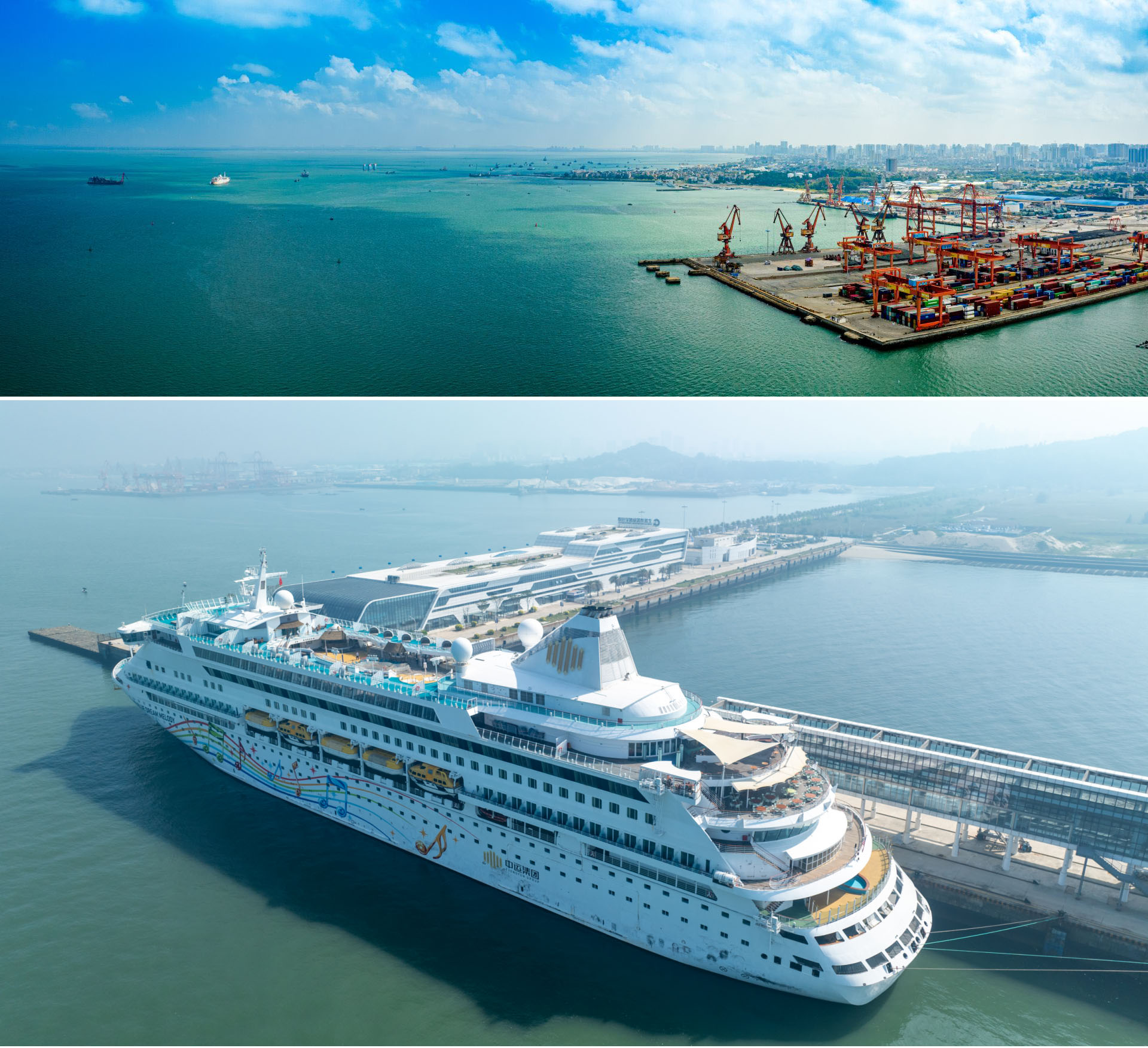 該港口位于北海港石步嶺作業區西北側、冠頭嶺國家森林公園北側海岸。已建成2個郵輪碼頭泊位,其中外側為一個5萬噸級郵輪泊位(水深9.2米,水工預留10萬噸級),內側為一個2萬噸級泊位(水深7.5米)。后方配套港區道路、客運中心、候船風雨廊橋等設施,形成岸線574米、陸域約40萬平方米,海域約59萬平方米。設計客運量為100萬人次/年,投資概算7.23億元。