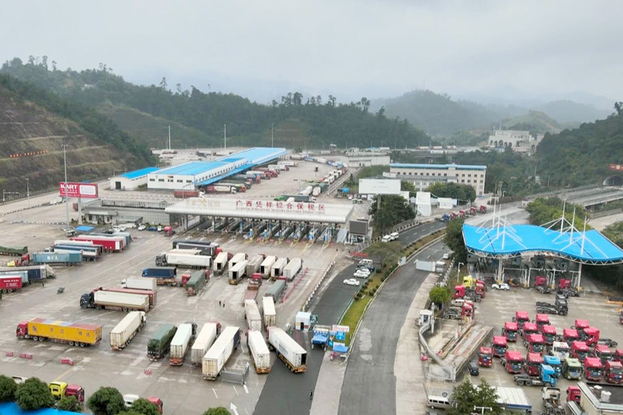 在貨物通關方面,來到憑祥的企業可以選擇高效便捷的貨物通關模式,可不再實行分段運輸、甩掛、吊裝等非接觸式貨物交接模式,也允許跨境車輛直接出入境,雙方貨代按規定與出入境處辦理相關的通關業務。雙方的跨境司乘人員駕駛貨車可以進入對方口岸區域外過泊貨場進行交接貨物,貨物的出入境更加的便利順暢。